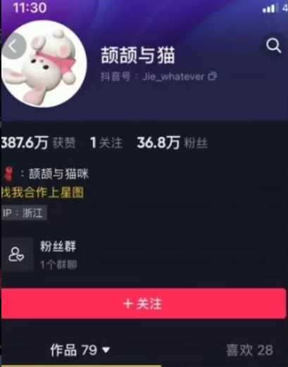 抖音号:Jie_whatever,IP属地:浙江,抖音小号:@甜腻,微博:颉颉与猫与猫咪,飞机:ss136661